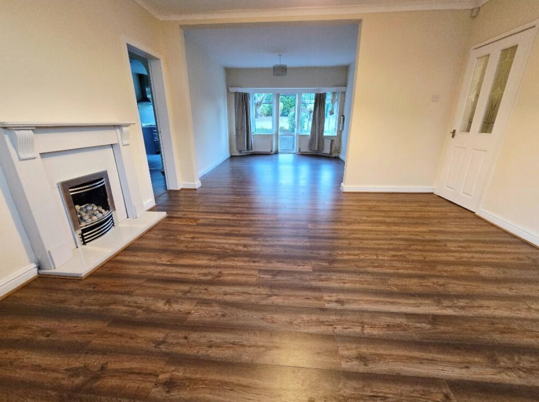 The modern kitchen is fitted with integrated appliances and enjoys lovely garden views. It is connected to the dining room, providing valuable additional space for family gatherings and entertaining.